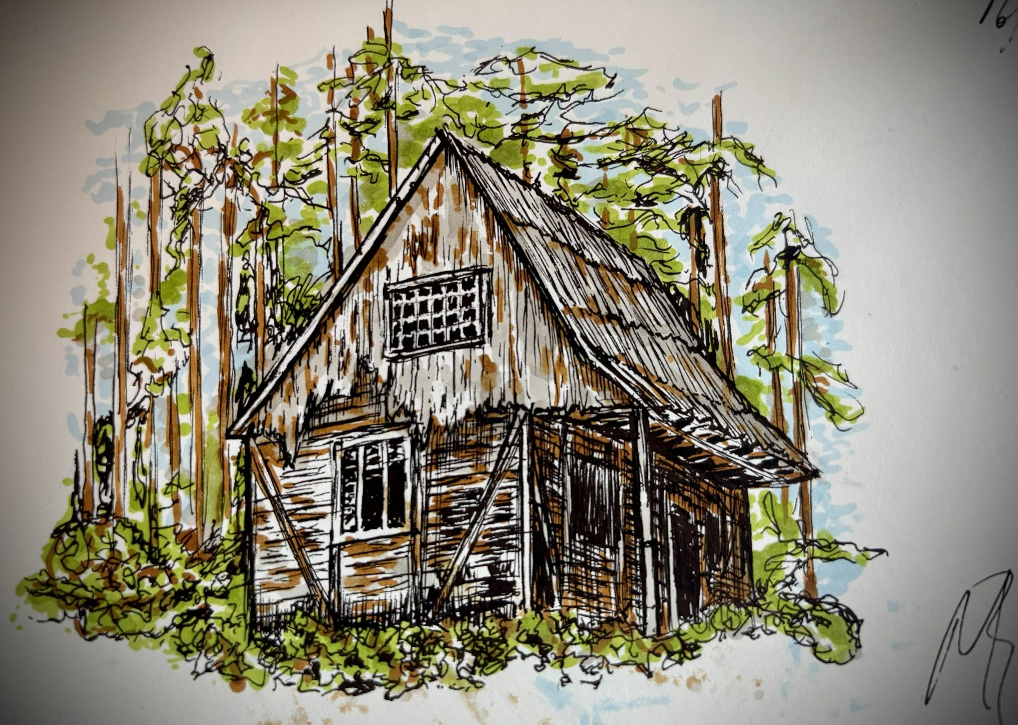 Ink and Colour Sketch Study