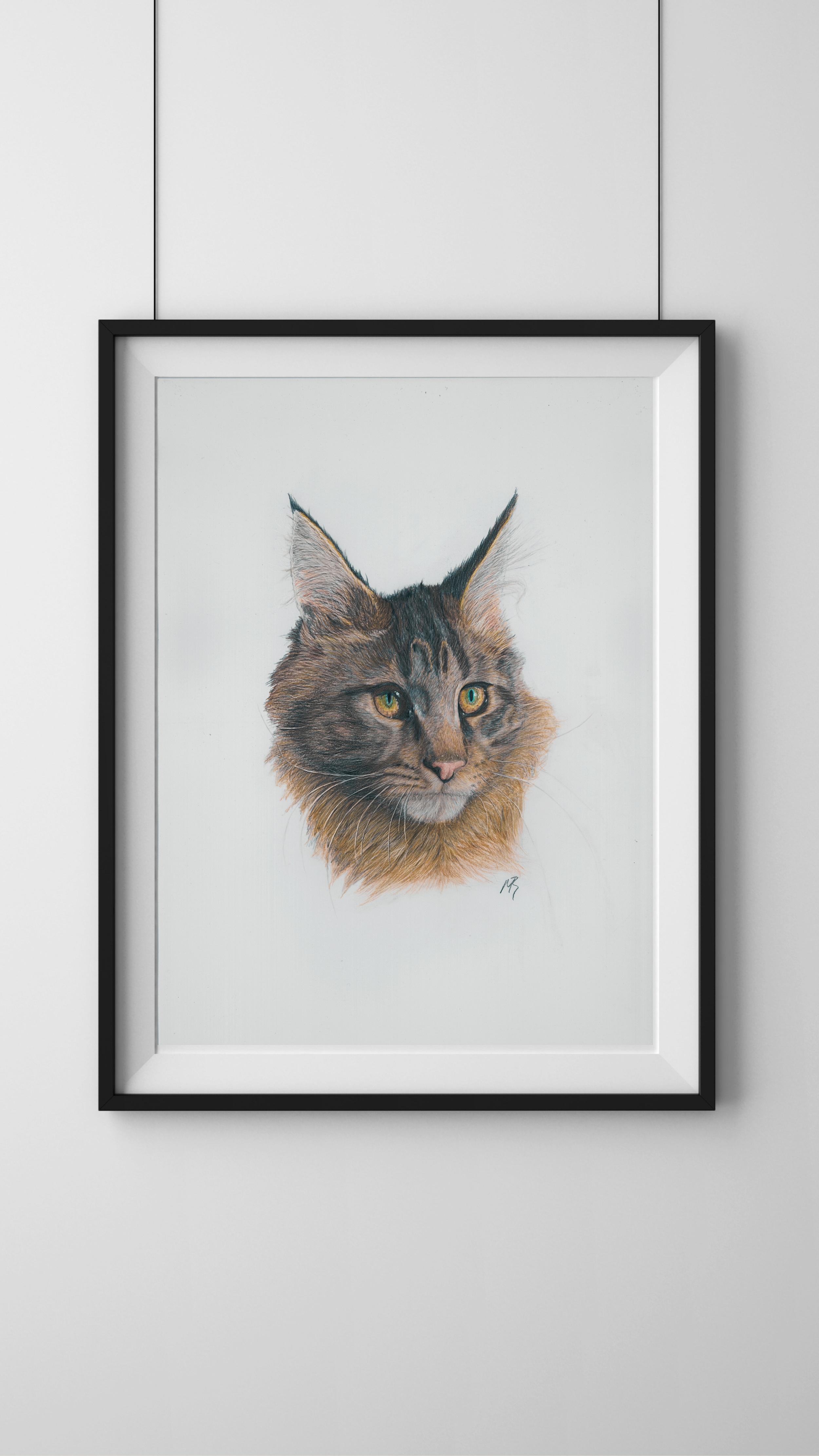 For all my artwork, I employ premium materials, utilising high-quality drafting film and lightfast pencils. This combination ensures the longevity and vibrancy of your pet's portrait, granting you a lifetime of enjoyment.